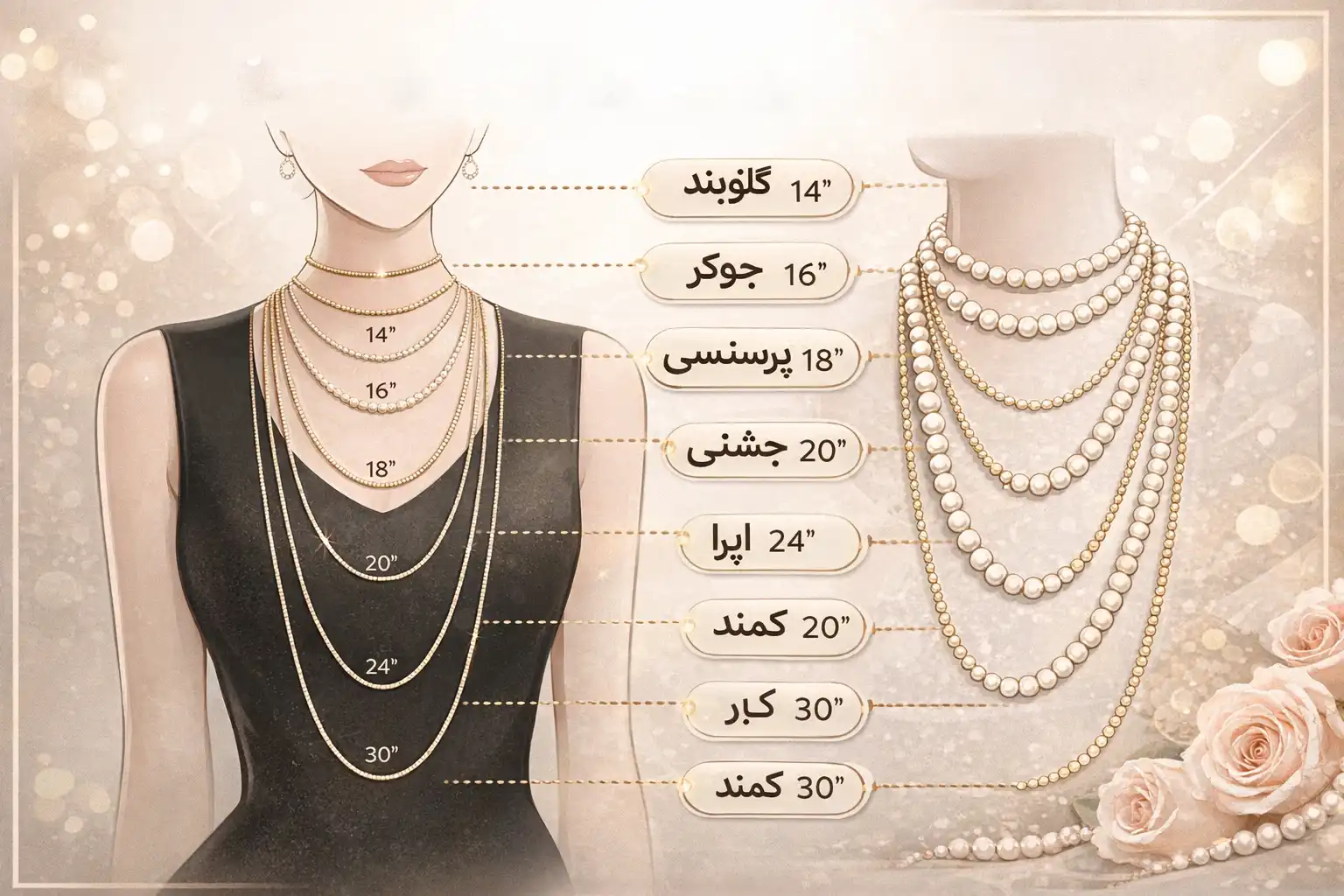 جدول استاندارد طول انواع گردنبند زنانه
